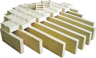 该产品采用ZrO2相变增韧补强莫来瓷的方法和独特的成型、烧成工艺而制成,是大型填料塔理想的填料支承装置。